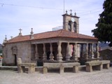 A torre sineira é monumento nacional granítico do século XVIII, sendo formada por uma nave de acesso e pela torre com os respectivos sinos. Também famoso é o pormenor por cima da porta lateral do templo, com três cabeças insculpidas, uma das quais com asas e amparando o cérebro com as mãos. Este conjunto é vulgarmente conhecido por “a lavandeira”. No interior da igreja, destacam-se o coro-alto, o púlpito e as pinturas seculares e algumas imagens consagradas.